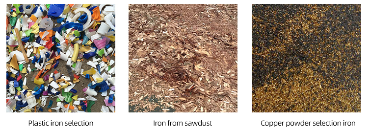 When the granular material passes directly under the permanent magnet self-unloading iron remover, about 0.1-0.36 kg of ferromagnetic impurities mixed in the material are sucked up. Since the belt on the iron remover is constantly running, when it is adsorbed on it When the ferromagnetic material passes through the non-magnetic area, it will be scraped off by the iron parts on the belt and thrown into the iron collecting box, so as to achieve the purpose of continuous and automatic iron removal. The iron remover is a device that generates a strong magnetic field. It can clean up the ferromagnetic materials mixed in the materials and ensure the safe and normal operation of the crushers and grinders in the conveying system. It is mainly suitable for conveyor belt width and general belt width. 400mm, 500mm, 600mm, 700mm, 800mm.