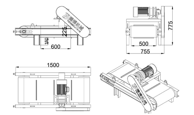 The permanent magnet self-unloading iron remover is based on the suspended permanent magnet iron remover with increased size and additional components such as drive motors, conveyor belts, frames, magnetic drums, idlers, etc., and is used in conjunction with various conveyor belts.